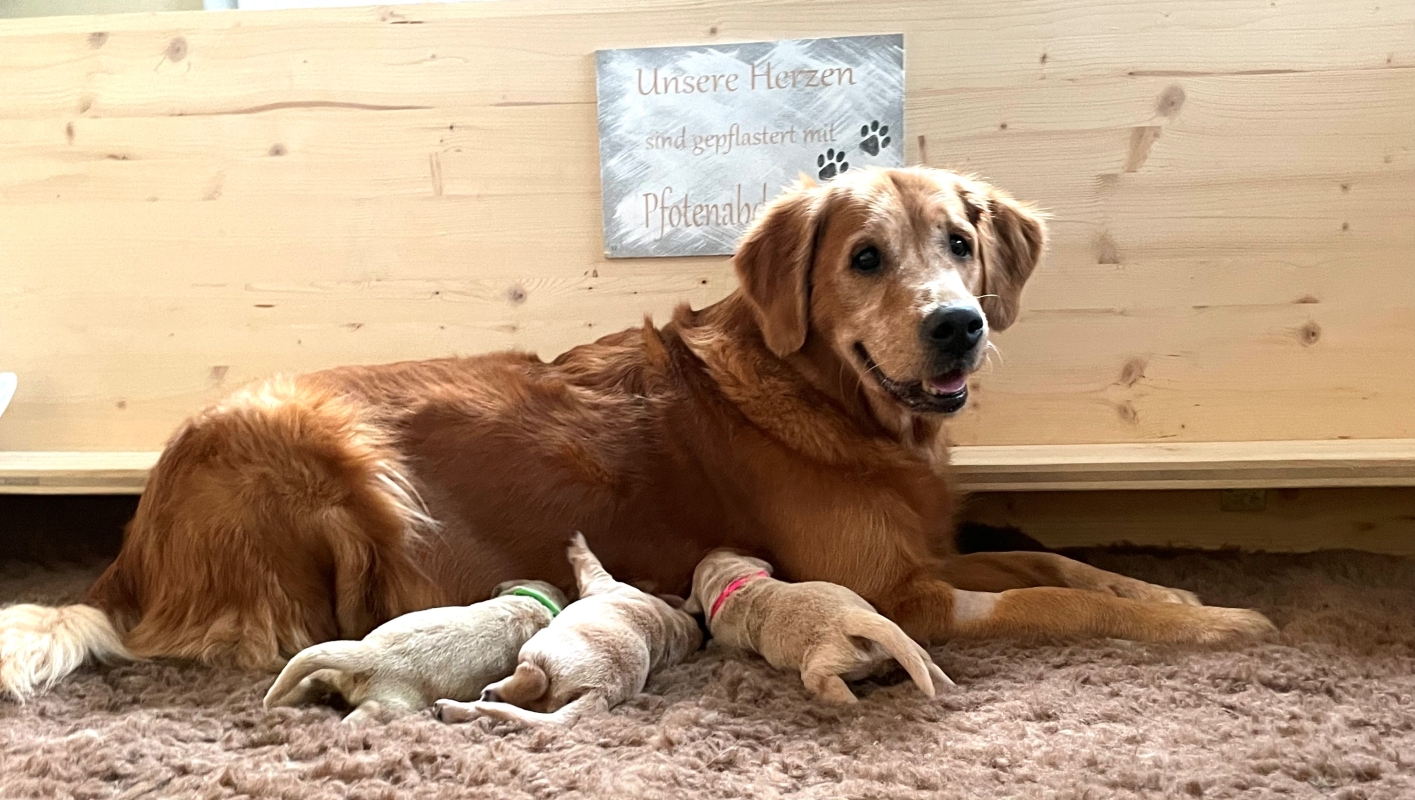 Aileen schenkte am 12. Oktober 2 Rüden und einer Hündin das Leben. Die Geburt verlief leider nicht reibungslos und ein Rüde wurde als Sternchen geboren. Ein grosser Dank gilt dem Team von VETIMAGE Diagnostik, allen voran Olivier Gardelle und auch dem Team der Tierklinik Aarau West.