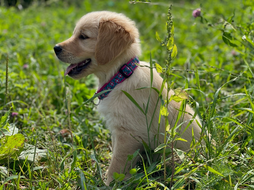 Mit grosser Freude ergänzt Nayla (of everlasting goldendreams) seit ein paar Tagen unser Rudel am Rebhügel. Die kleine „Grüne“ hat sich schon wunderbar in unseren Alltag eingelebt, ist fröhlich, neugierig und einfach zum Verlieben.