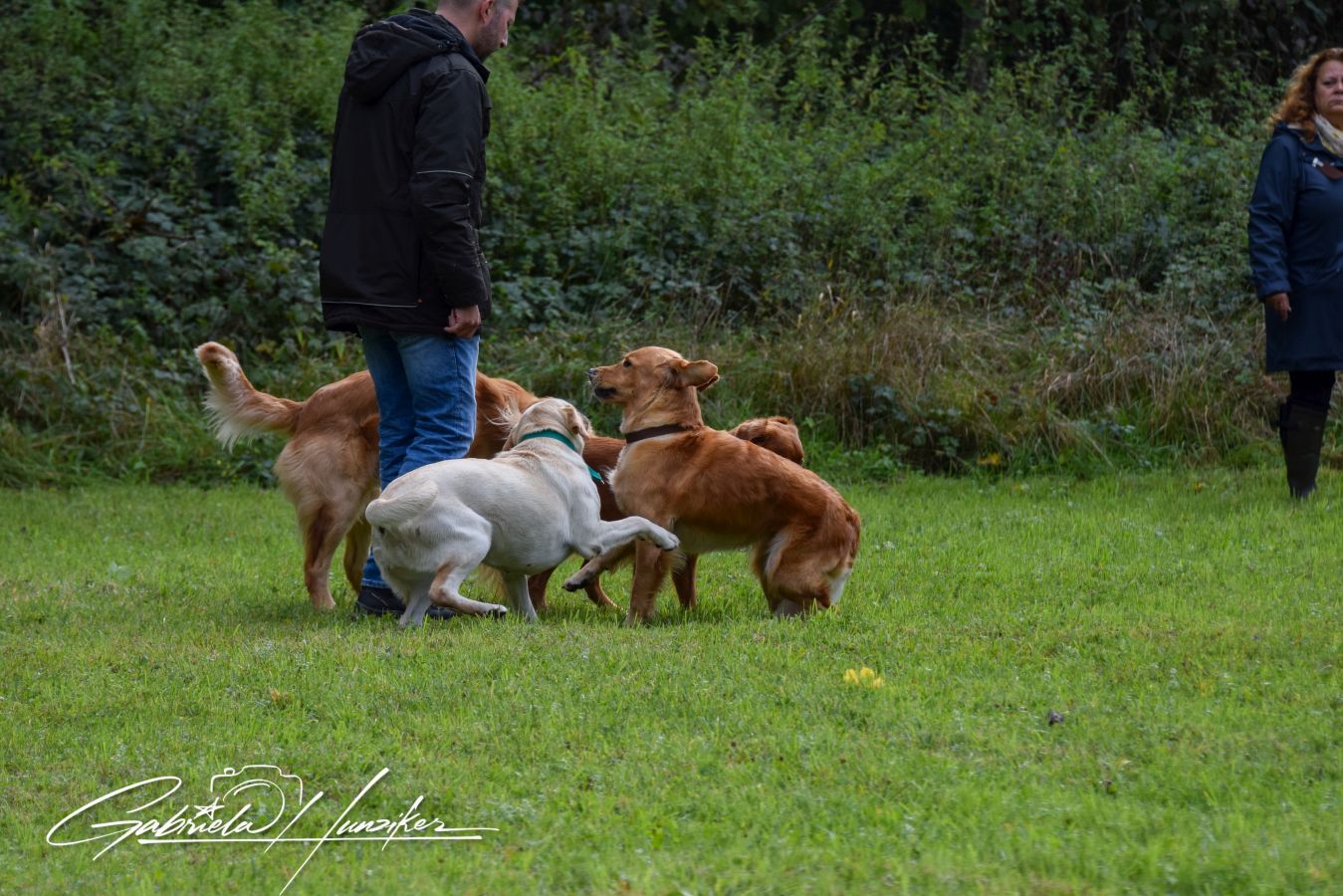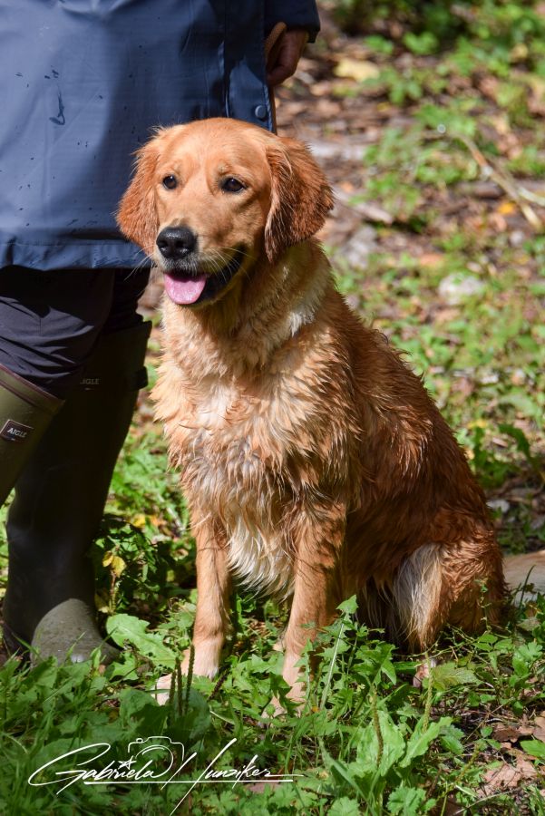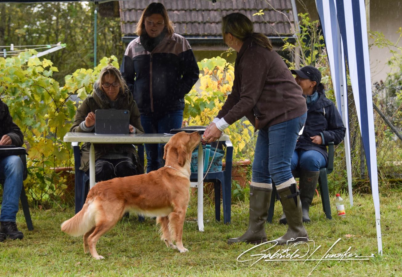 Es war eine Freude den beiden zuzuschauen. Sandra führte Lani souverän durch alle Aufgaben und Lani genoss „diese Show“ voll und ganz. Sie apportierte den geworfenen Dummy (Mark) souverän und konnte auch die versteckten Dummy’s (Blinds) wittern. Im Umweltparcours bewegte sie sich sicher und liess sich von nichts beeindrucken. Im Spiel mit ihren Artgenossen verhielt Lani sich perfekt und zeigte klar, wo ihre Grenzen sind. Auch das Spiel mit Sandra und dem Richter hat sie toll gemeistert. Zum krönenden Abschluss durften die Hunde noch ins Wasser - Lani musste man das nicht 2 mal sagen…